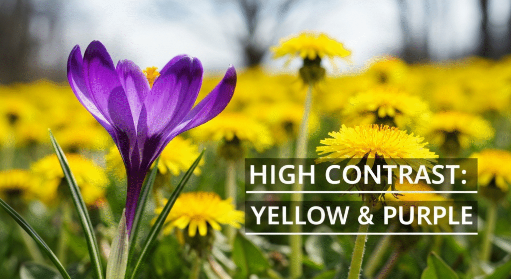 - Yellow & Purple: Think of a purple crocus in a lawn dotted with yellow dandelions. The contrast is electric.